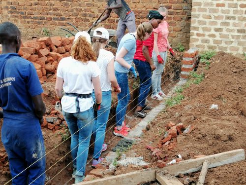 Auch wenn die Bauarbeiter anfangs skeptisch waren was unsere Mauerkünste betrifft, haben wir versucht, sie vom Gegenteil zu überzeugen. Wir haben festgestellt, dass man hier viel mehr Zement als in Deutschland verwendet. Auch hier galt wieder das Motto „Viele Hände, schnelles Ende“, wie man bereits an unserer Menschenkette gesehen hatte, mit der wir die Steine schneller von A nach B transportiert haben.