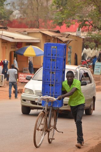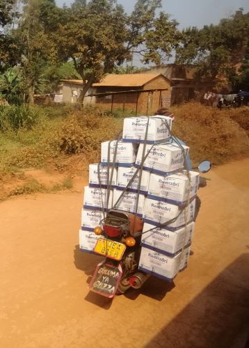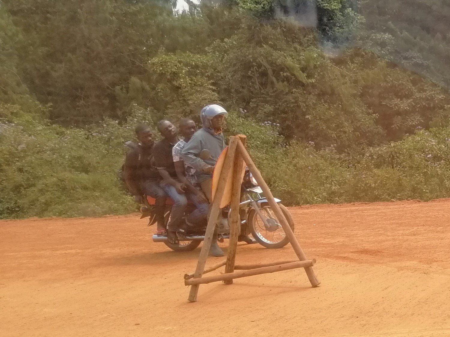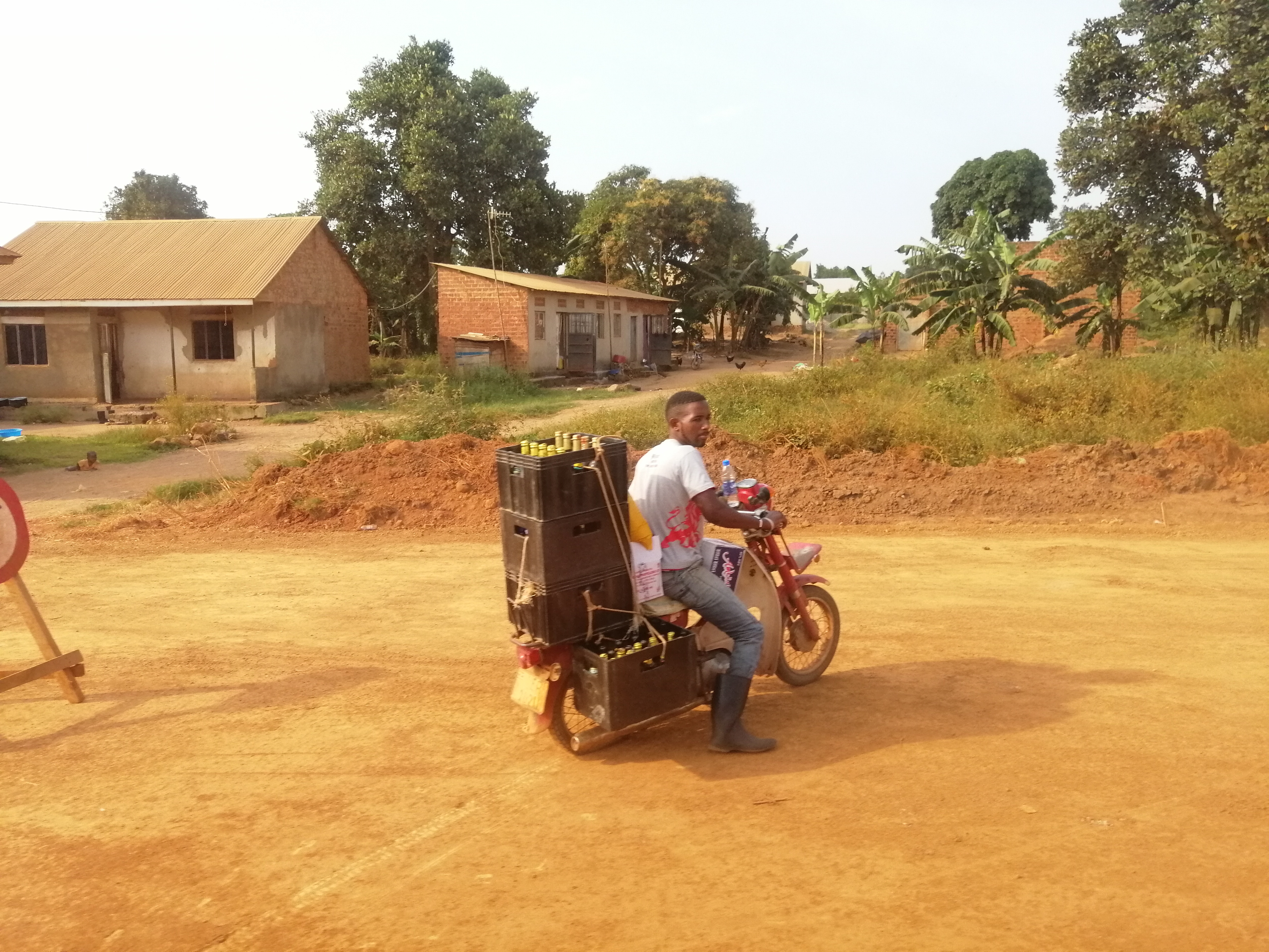 Autos fahren hier selten entlang, die kann sich in den ländlichen Gebieten schlichtweg kaum einer leisten. Wenn man sich fortbewegen möchte, hat man in der Regel zwei Möglichkeiten: Zu Fuß oder mit einem der vielen Motorradtaxis (Bodabodas). Sie prägen das Bild auf den Straßen. Ab und zu sieht man auch mal jemanden auf einem Fahrrad. Nicht selten sitzen mehr als zwei Passagiere auf einem der vielen Motorräder.