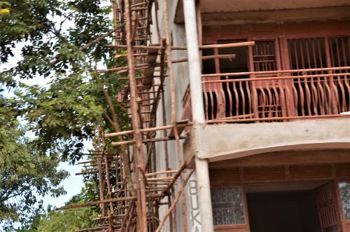 Auch auf den Baustellen trauten wir oft unseren Augen nicht. Baugerüste bestehen hier immer aus windschief zusammengebunden Holzpfählen.