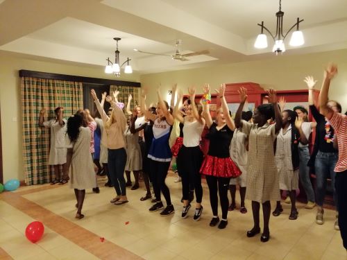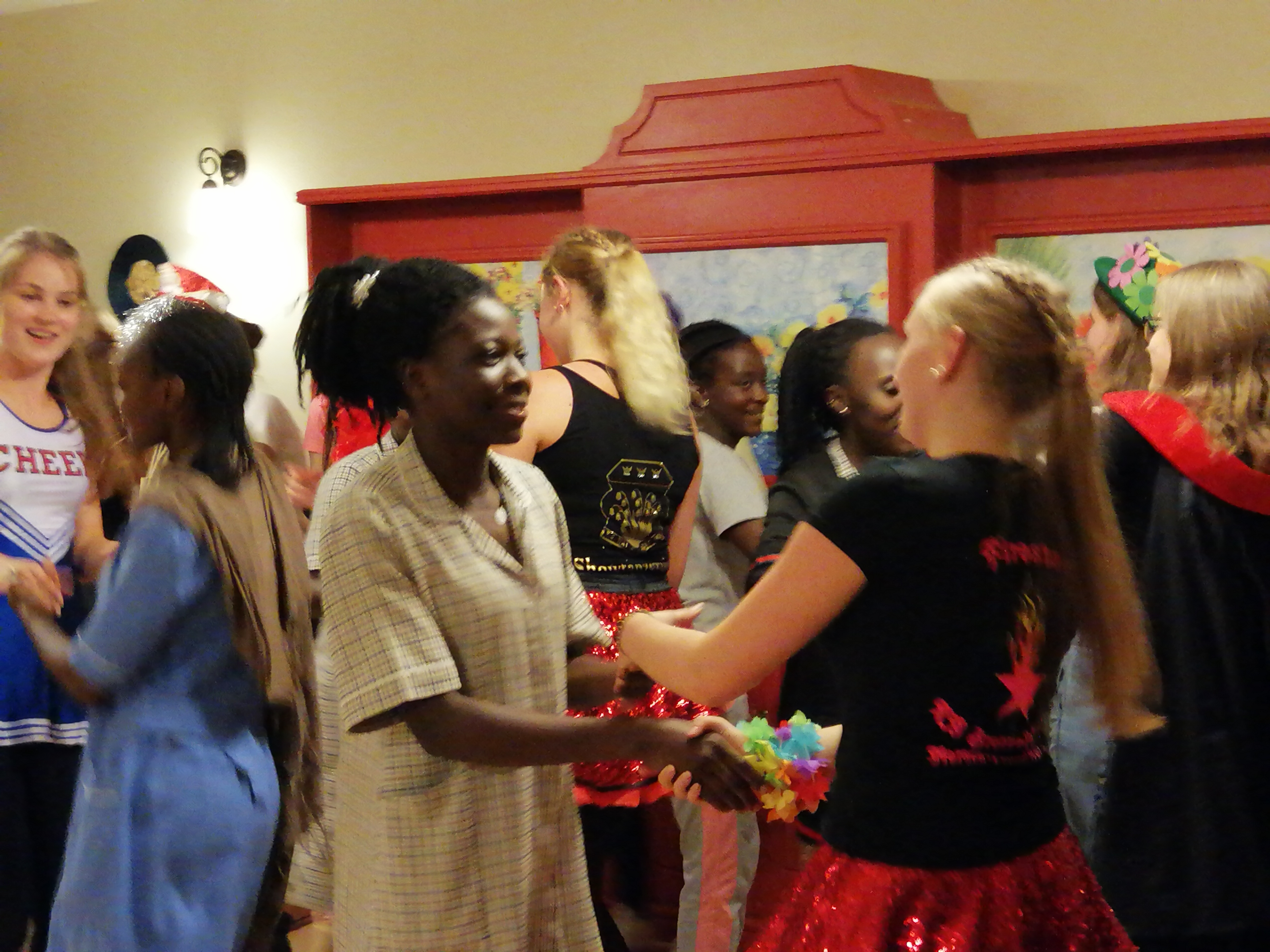Wir waren kostümiert, Alina S. und Luisa zeigten einen Showtanz und die Uganderinnen waren begeistert. Nach der geforderten Zugabe kam der Höhepunkt des Abends – Kamellewerfen ins Volk. Das tumultartige Einsammeln der Süßigkeiten hält dem Vergleich mit den Szenen bei deutschen Umzügen durchaus stand. Alles in allem ein sehr gelungener Abend. Uganda Alaaf!
